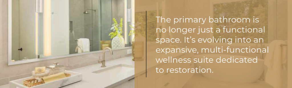 A growing focus on longevity and health means the primary bathroom is no longer just a functional space. It’s evolving into an expansive, multi-functional wellness suite dedicated to restoration. It is a sanctuary within the sanctuary.
